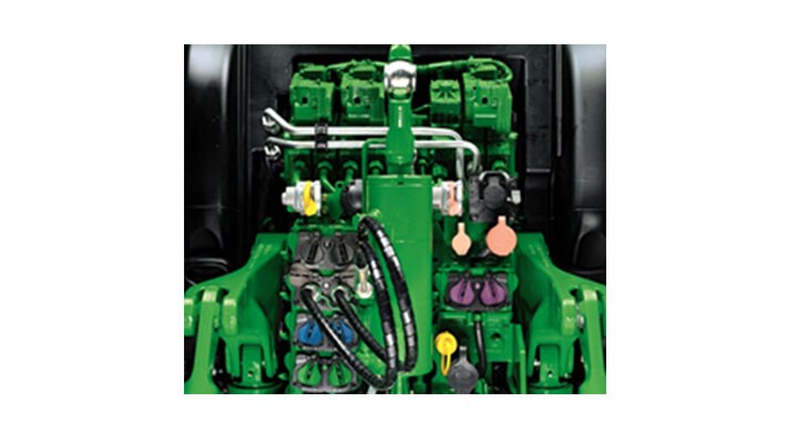 Un tracteur 6R comprend jusqu’à six distributeurs auxiliaires électro-hydrauliques, avec levier de décharge de pression, qui sont regroupés de manière logique.