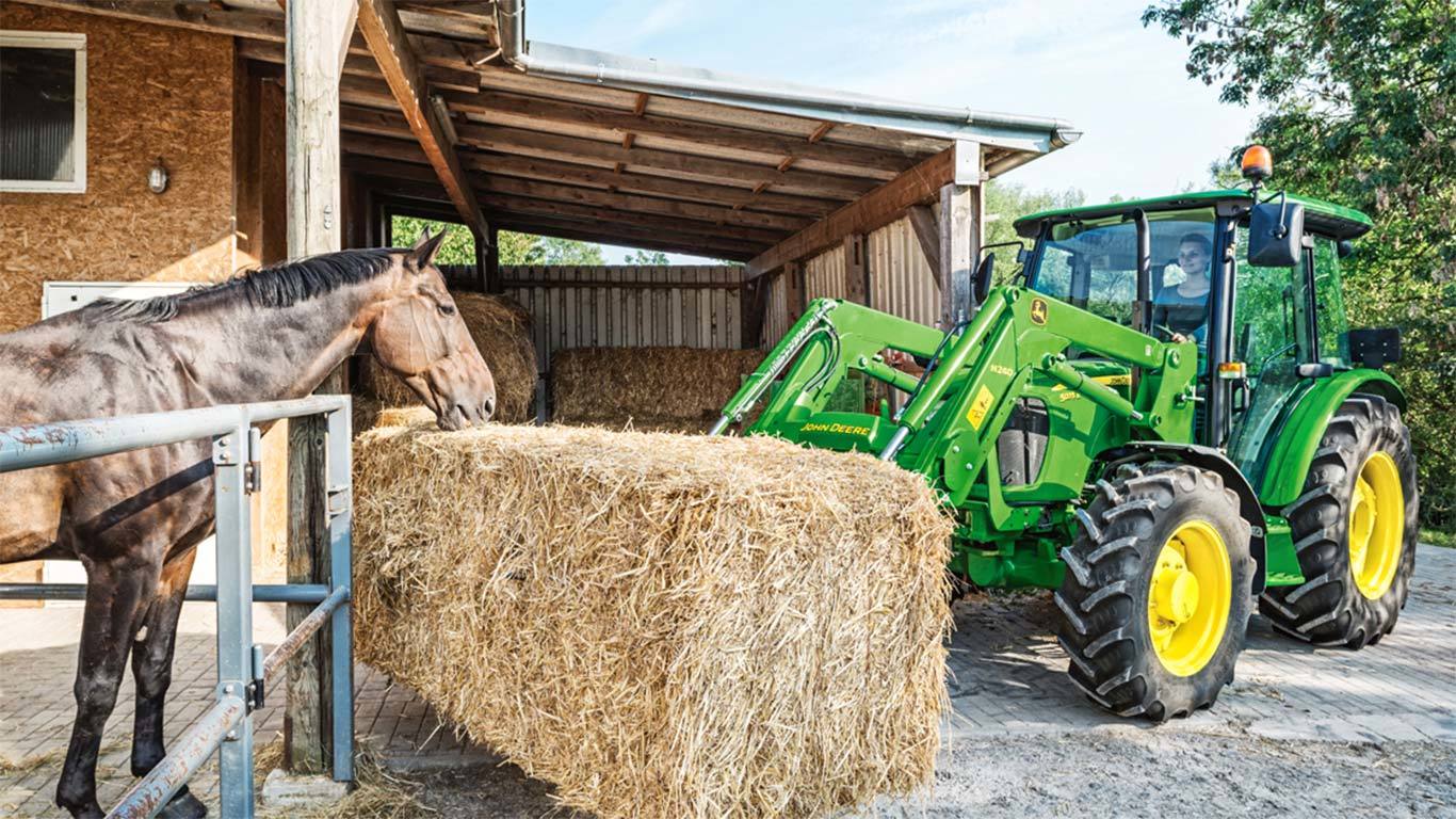 Le design intégré du chargeur frontal H240 apporte une performance optimale sur les tracteurs série 5E et 5G. Cette solution 100% John Deere est disponible en configuration avec mise à niveau automatique mécanique (MSL) ou sans mise à niveau automatique (NSL). Le pack de maniabilité est idéal pour les travaux de la ferme et de construction.