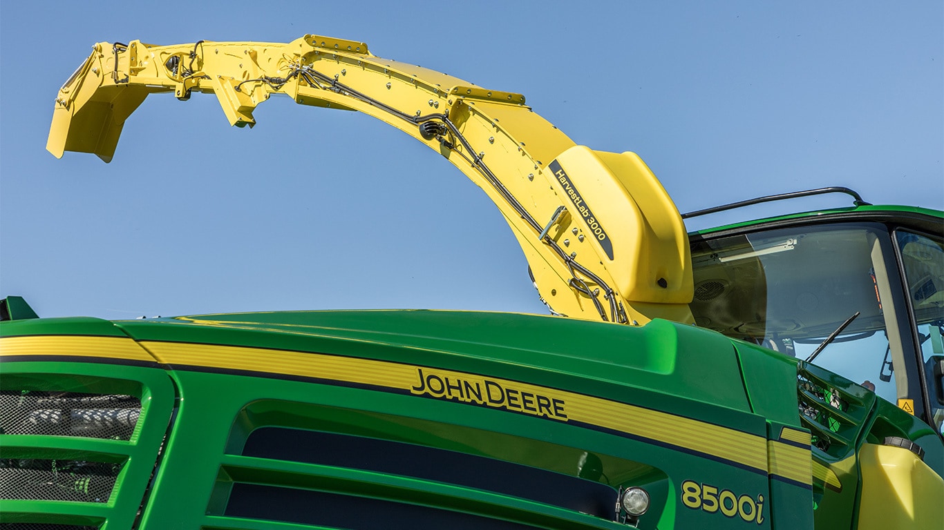 La teneur en humidité des cultures peut varier jusqu'à 20 % dans un seul champ nécessitant une longueur de coupe différente pour assurer un tassement idéal de l'ensilage. Monté sur une ensileuse John Deere, l'HarvestLab 3000 permet le réglage automatique de la longueur de coupe en fonction de la teneur en matière sèche.