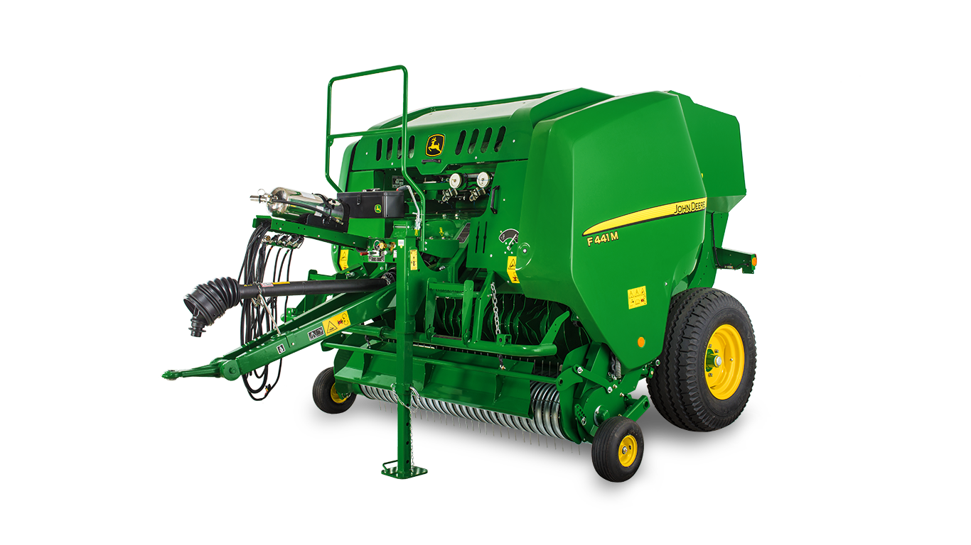 Découvrez notre presse enrubanneuse C441R: elle combine la presse à balles rondes à chambre fixe F441R avec le système d'enrubannage haute performance John Deere pour créer la meilleure presse enrubanneuse: compacte, performante, persévérante.
