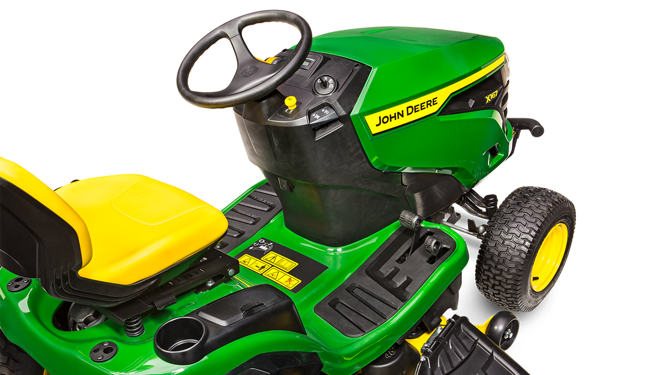 Si vous recherchez une performance fiable et la simplicité d’utilisation, jetez un coup d’œil à la X167. La plate-forme de conduite ergonomique aux commandes avec codes couleur, le siège réglable pour une conduite plus agréable et le choix infini de vitesses de déplacement font de la X167 un plaisir à conduire. Le tout repose sur un châssis en acier entièrement soudé et un essieu avant en fonte construit pour des années de service fiable. La X167 constitue une acquisition simple et un plaisir à utiliser.