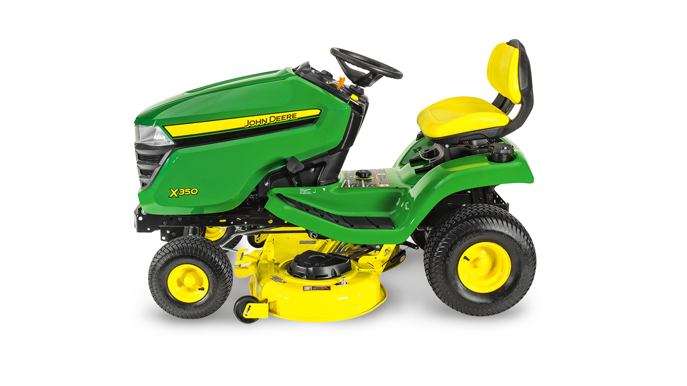 Si vous recherchez une entrée de gamme abordable sans superflu dans le segment des tracteurs de jardin, la X350 est faite pour vous. Une console moderne rappelant une voiture, des commandes à la disposition ergonomique et ses pédales de contrôle de la transmission Twin Touch™ permettent une expérience de tonte sans effort. Vous avez le choix entre différentes unités de coupe, si bien que vous pouvez trouver la X350 qui correspond parfaitement à vos besoins.