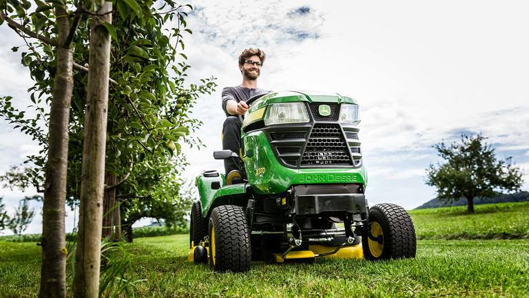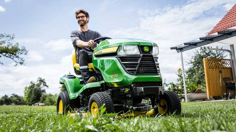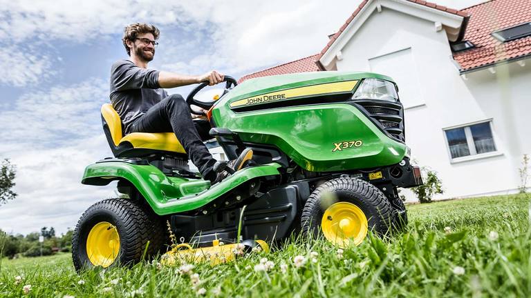La X370 ajoute un niveau supplémentaire de confort grâce à la direction assistée et au relevage hydraulique du carter de coupe. Vous apprécierez également la console épurée rappelant une voiture, les commandes à la disposition ergonomique et les pédales de contrôle de la transmission Twin Touch™ faciles à utiliser. Vous relèverez tous vos défis en termes de tonte avec style au volant de la X370.