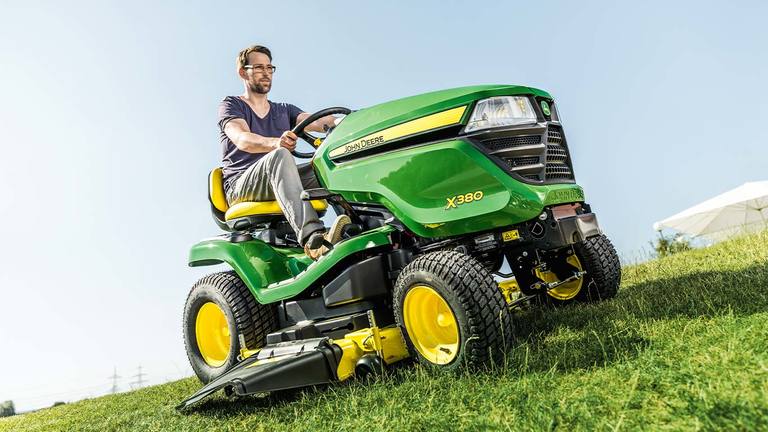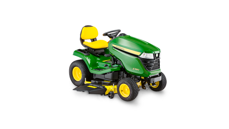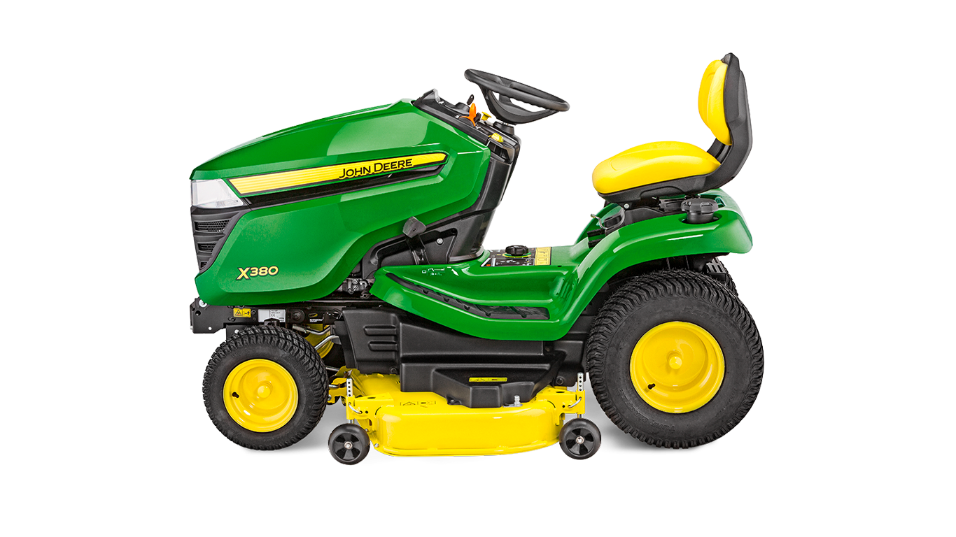 La X380 se conduit comme un rêve et coupe comme une championne. Une molette pratique vous permet de régler la hauteur de coupe par pas de 6 mm sans quitter le confort de votre siège. Vous aimerez la console épurée rappelant une voiture, les commandes à la disposition ergonomique et les pédales de contrôle de la transmission hydrostatique Twin Touch™ faciles à utiliser qui vous permettent de contrôler la direction et la vitesse sans devoir lever votre pied de la plateforme.