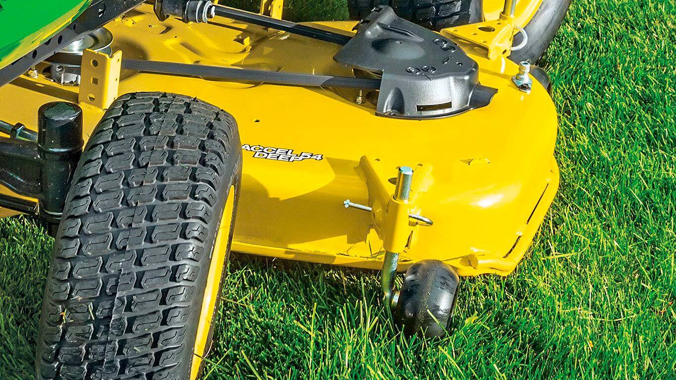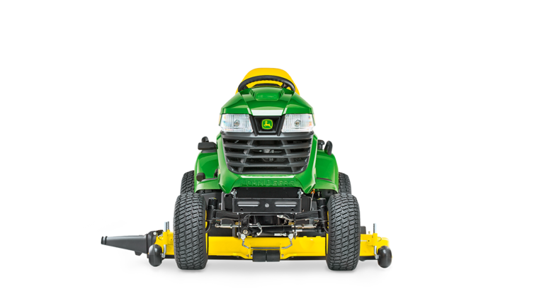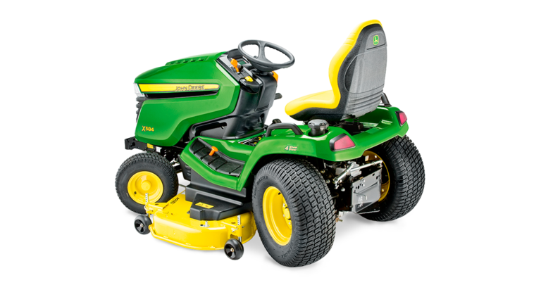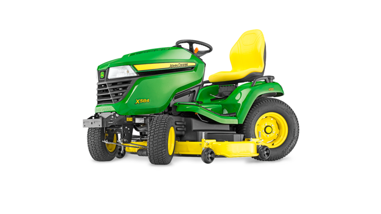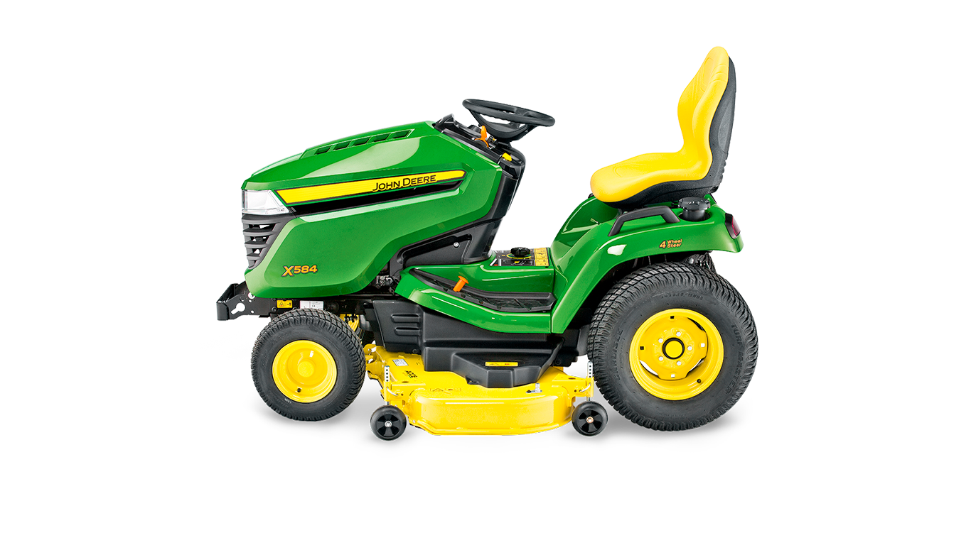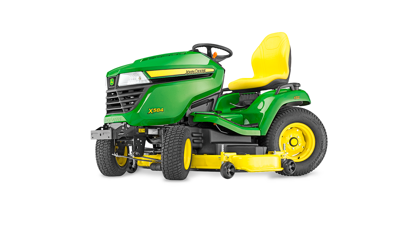 Une performance multiterrain, Notre tracteur X584 se faufile partout et affronte sans broncher toutes les tâches que vous lui confiez. Grâce à son empattement long, son centre de gravité bas, sa transmission intégrale et son blocage du différentiel supérieur, vous tondrez les pentes avec plus de confiance et vous viendrez à bout de tous les défis et terrains avec une facilité totale et une précision incroyable. Le X584 : multiterrain, multitalent.