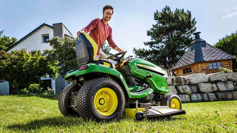Un niveau supérieur de facilité d'utilisation – la X590 dispose de la direction assistée pour un contrôle sans effort. Notre tracteur multi-terrain se faufile partout et affronte sans broncher toutes les tâches que vous lui confiez. Grâce à son empattement long, son centre de gravité bas, sa transmission intégrale et son blocage du différentiel supérieur, vous tondrez les pentes avec plus de confiance et vous viendrez à bout de tous les défis et terrains avec une facilité totale et une précision incroyable. Le X590 : multiterrain, multitalent.