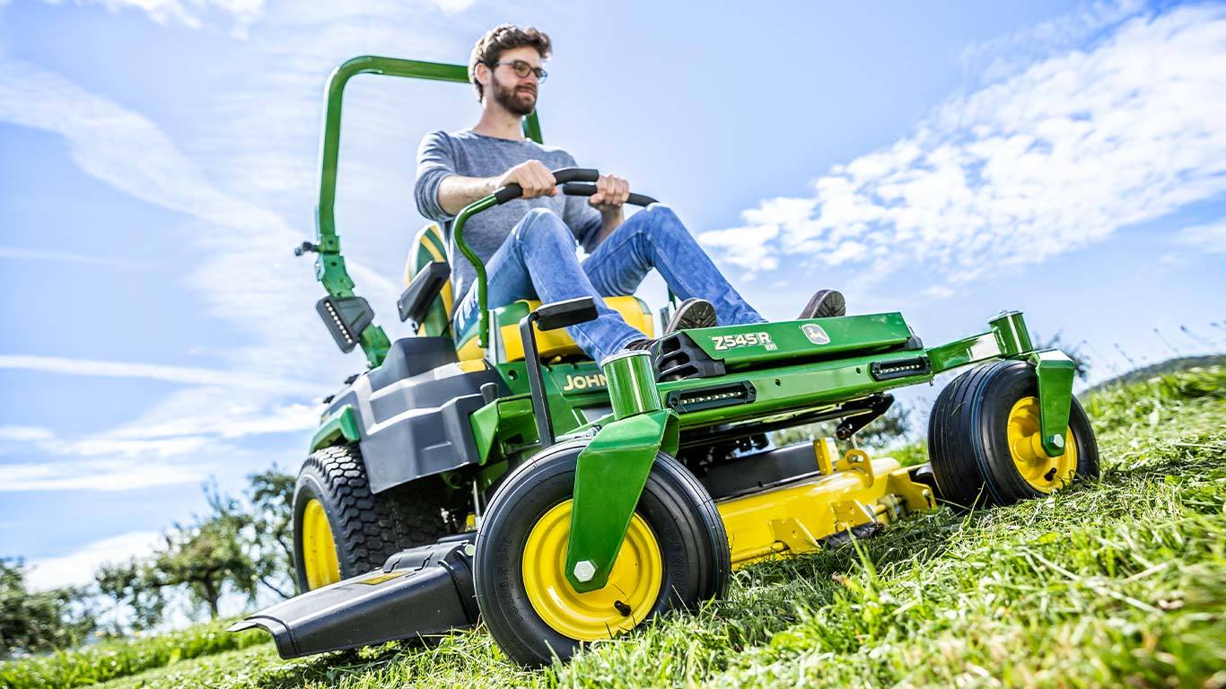 Conçue pour une expérience de tonte résidentielle à braquage nul ultime, la Z545R est synonyme de puissance et performance premium. L’unité de coupe de 122 cm (48 po) dispose d’un design haute capacité pour gérer plus efficacement de plus grands volumes d’herbe. De plus, elle est entraînée par un moteur de 15,3 kW bicylindre avec injection de carburant électrique (EFI) et technologie de contrôle d’accélération électronique pour plus de commodité et une tonte efficace. La conversion de la plateforme pour des tâches de déchiquetage ou de ramassage s'effectue facilement à l'aide de kits supplémentaires disponibles en option. Construite solidement sur un châssis robuste garantissant une tonte aisée et fluide, la Z545R possède également un siège confortable avec un dossier surélevé, une plateforme isolée pour l’opérateur avec beaucoup d’espace pour les jambes et de nombreux espaces de stockage dédiés.