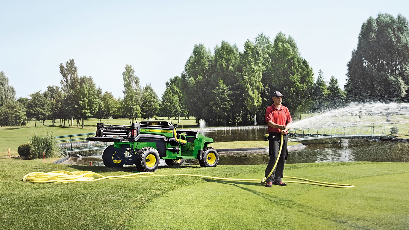 Montez à bord du Gator TX amélioré et appréciez le puissant moteur 2 cylindres offrant davantage de couple et une plus grande vitesse de déplacement, sans oublier la caisse de chargement Deluxe d'une capacité de 460 litres dotée d'un hayon de style pick-up avec ses différentes options de fixation.